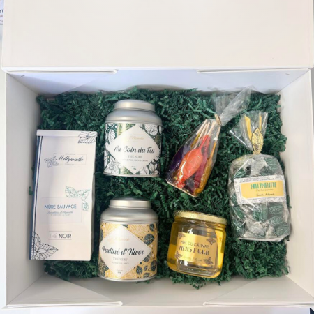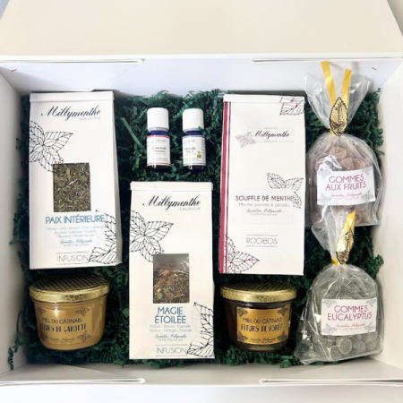 Boite blanche pelliculée mat avec rabat aimanté pour présenter les produits Millymenthe de votre choix dans un joli coffret cadeau à offrir.