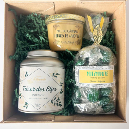 Boite en kraft avec rabat aimanté pour présenter les produits Millymenthe de votre choix dans un joli coffret cadeau à offrir.