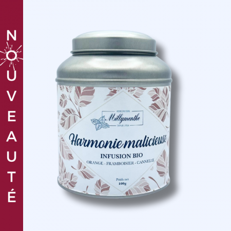 “Harmonie Malicieuse” est une infusion premium créée pour offrir détente, chaleur et sérénité.