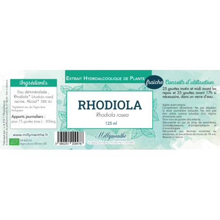 Eau, Rhodiola rosea* (Sedum roseum*), alcool* 58% vol. *Ingrédient issu de l'agriculture biologique.