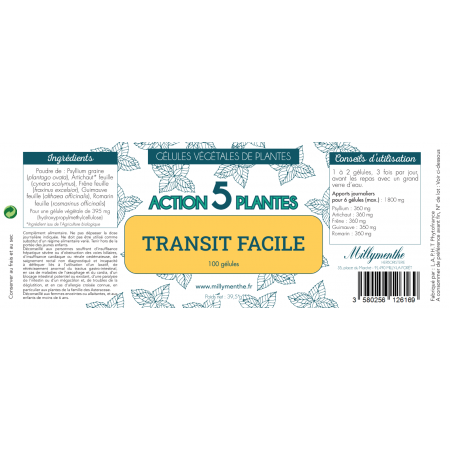 Poudre de plantes: psyllium, artichaut*, frêne, guimauve, romarin *ingrédient issu de l'Agriculture biologique