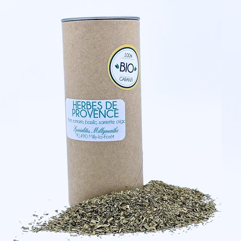 Les Herbes de Provence sont un mélange traditionnel de plantes aromatiques. Elles regroupent généralement du thym, romarin basilic, sarriette et parfois de la marjolaine. Leur parfum et leurs goûts, relève merveilleusement bien la viande, les légumes et les sauces. Pour faire la cuisine ou une simple grillades ce mélange est idéal pour apporter une touche méditerranéenne à votre cuisine. Elles s’intègrent naturellement dans une alimentation équilibrée.